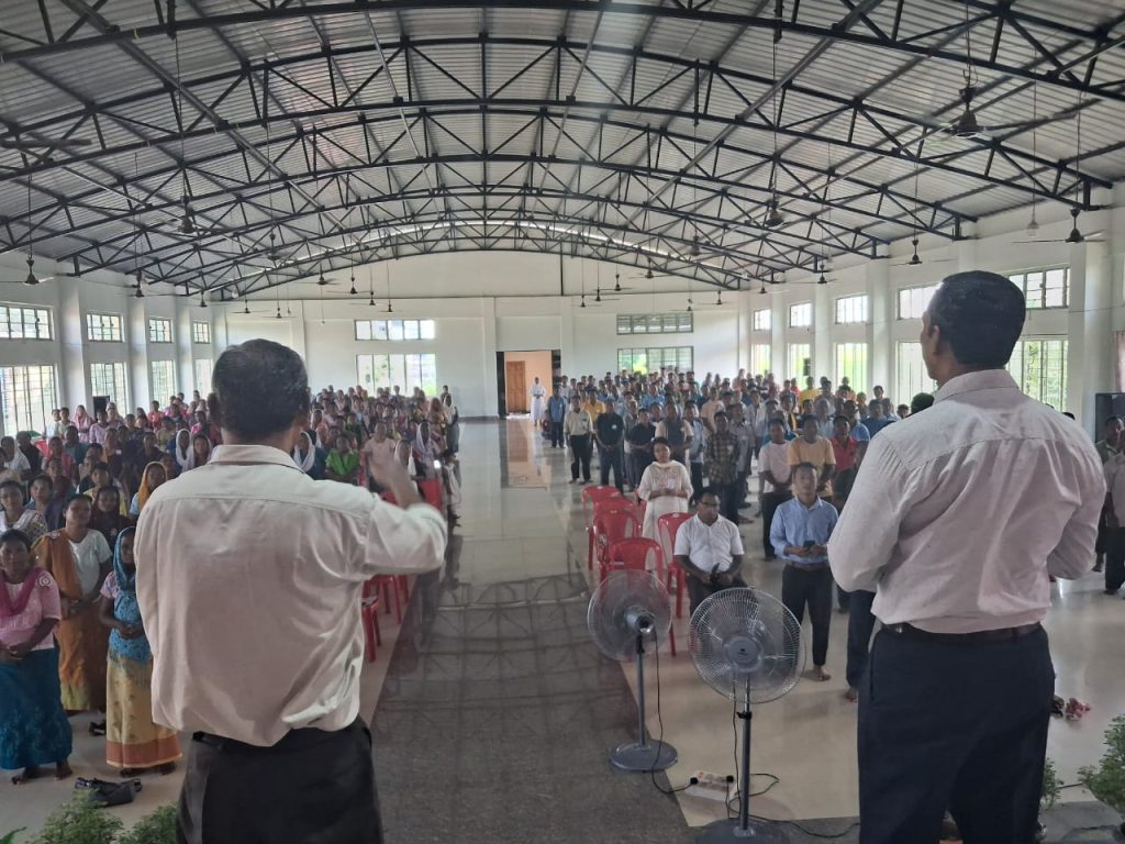 Fr. Thyrniang highlighted the unique blessing of Satgaon, where a significant Catholic population resides within a compact area of 4–5 sq. km radius. This, he noted, is of immense benefit for both the Church workers and the faithful. He also reflected on the theme of the retreat, “The Cross Before Us”, explaining that in this Jubilee Year of 2025 when the Cross is being carried from village to village and family to family the retreat serves as a reminder that followers of Christ are called to place the Cross at the center of their lives, to carry it with faith, and to anchor their hope in it throughout their life’s journey.