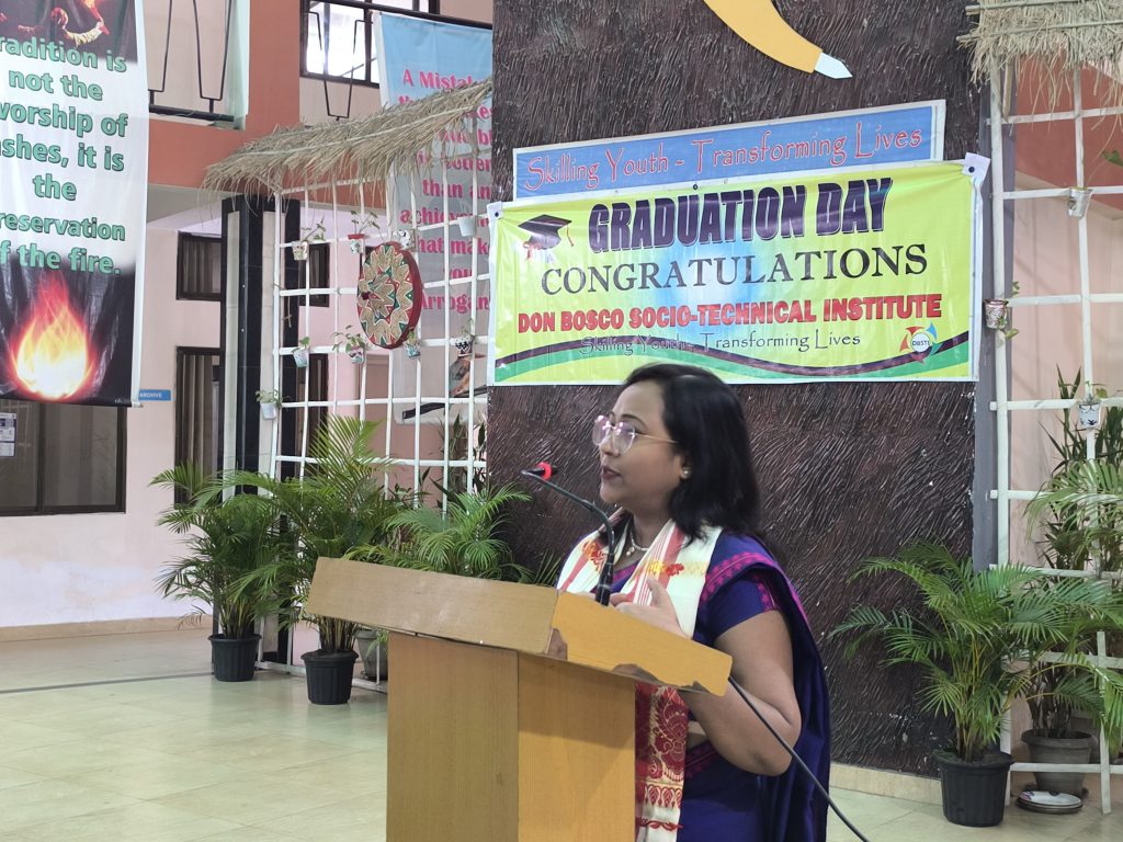 The Chief Guest for the occasion was Mrs. Nayama, Jailor of the Central Jail, Tezpur. She was warmly welcomed by the Director of the Institute, Rev. Fr. Paul Rabha SDB, who expressed his gratitude for her gracious presence and for presenting the certificates to the graduating students.