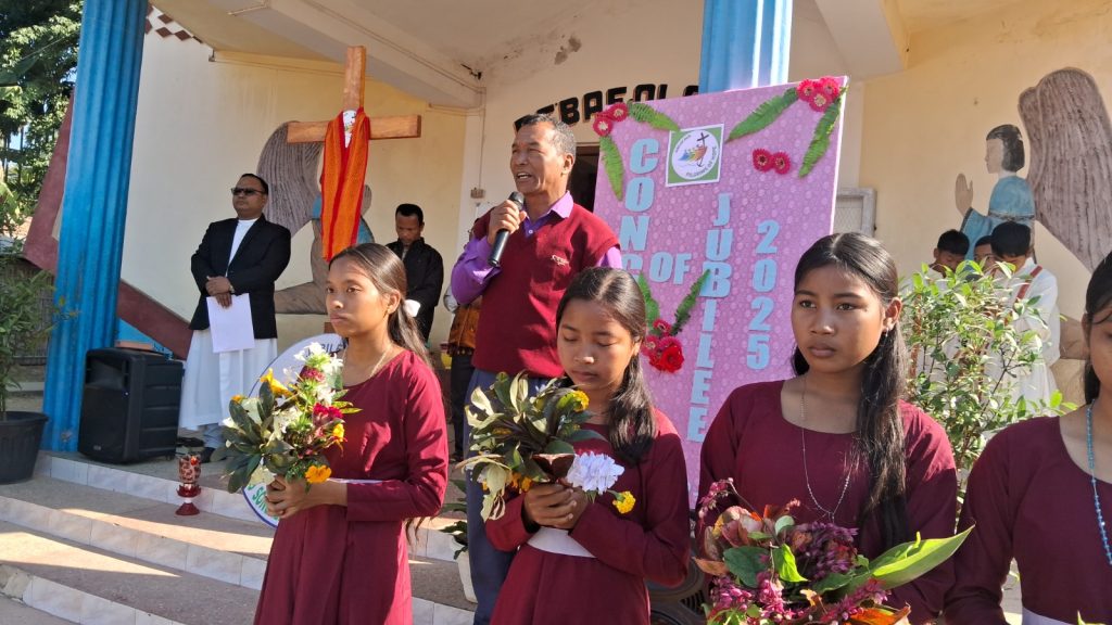 During a brief programme, two parish leaders shared their testimonies on the spiritual impact of the Jubilee Cross’s pilgrimage across all the villages and the year-long celebration of the Jubilee Year 2025. They highlighted the enthusiastic and widespread participation of the faithful, noting that the pilgrimage strengthened the faith of the people and touched even the lukewarm hearts. The youth of Rongkuroi village further enriched the occasion by presenting a graceful dance performance to the Jubilee theme song, “Pilgrims of Hope.”