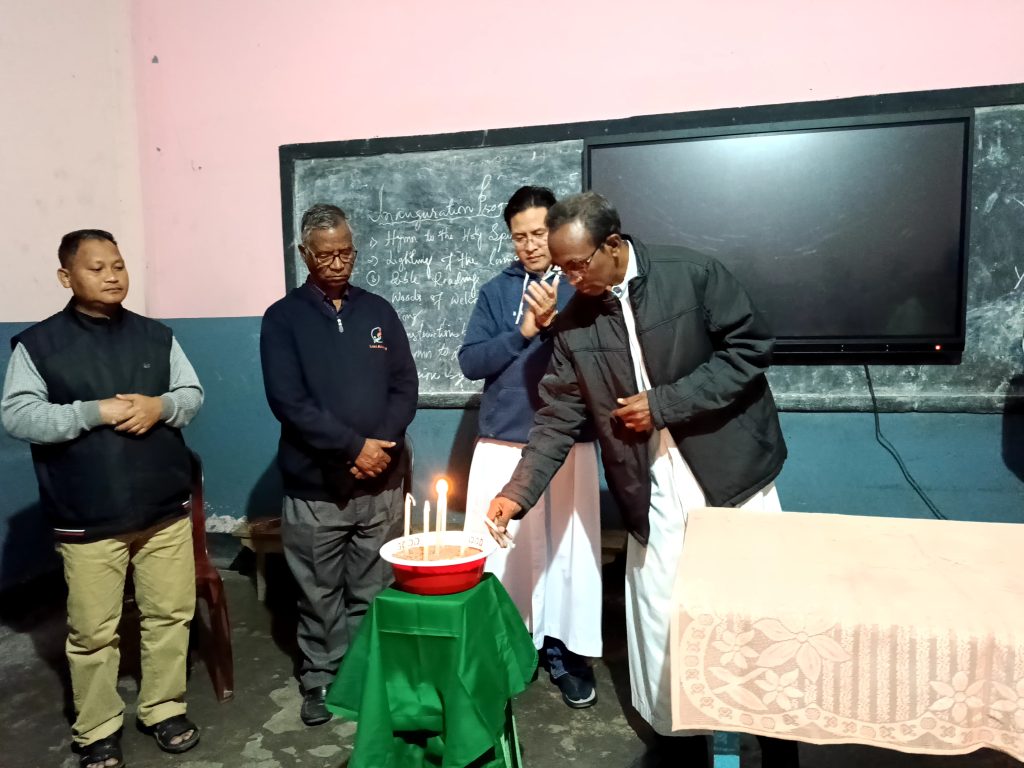 Rev Fr Anugrah Tete SDB lighting the candle at the Inauguration of the Vocation Camp at Dimakuchi.
