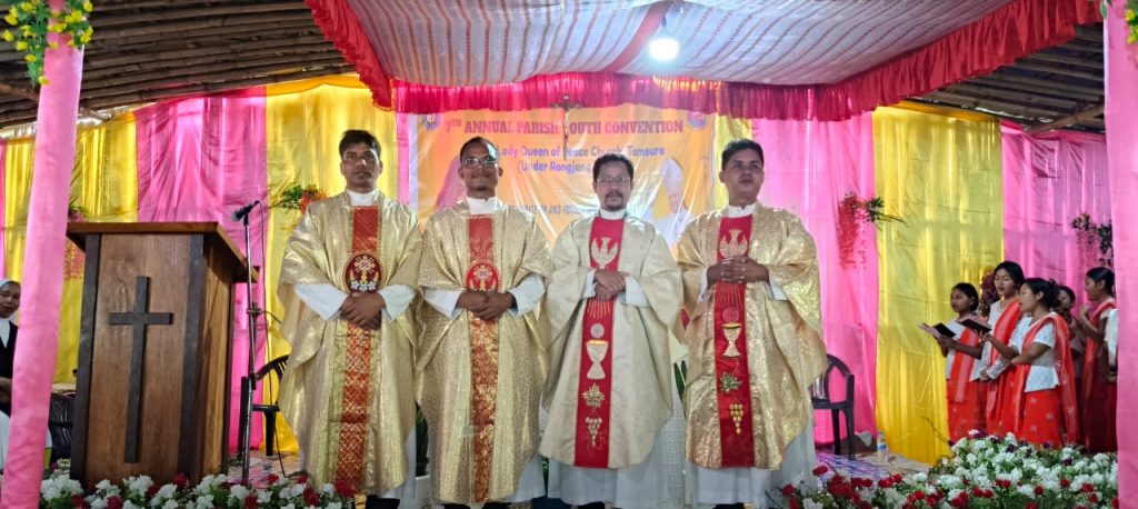 The 7th Annual Youth Convention of Holy Family Parish, Rongjeng, held from 17th to 19th April 2026, concluded on a spiritually uplifting note with the solemn Holy Mass celebrated by Rev. Fr. Pojit Marak, SDB, Rector of Holy Family Parish, Rongjeng, and concelebrated by the priests serving in the parish.