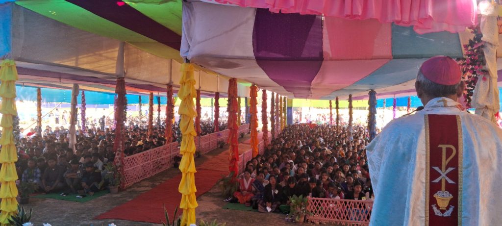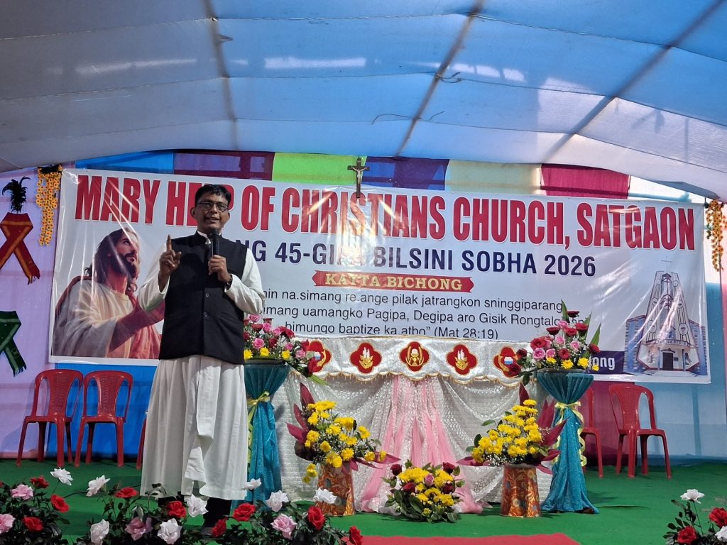 The 45th Annual Sobha (religious gathering) of Mary Help of Christians Parish, Satgaon, hosted at Jalpara B village, concluded on January 19, 2026, with a solemn Thanksgiving Mass and the ceremonial lowering of the Parish Flag. The highest point of the three-day celebration was the Holy Eucharist presided over by His Lordship, Rt. Rev. Bishop Paul Mattekatt, Bishop of Diphu, on Sunday, January 18, 2026. About 4,000 faithful participated in the Eucharistic celebration, during which the Bishop also administered the Sacrament of Confirmation to 180 young people.
