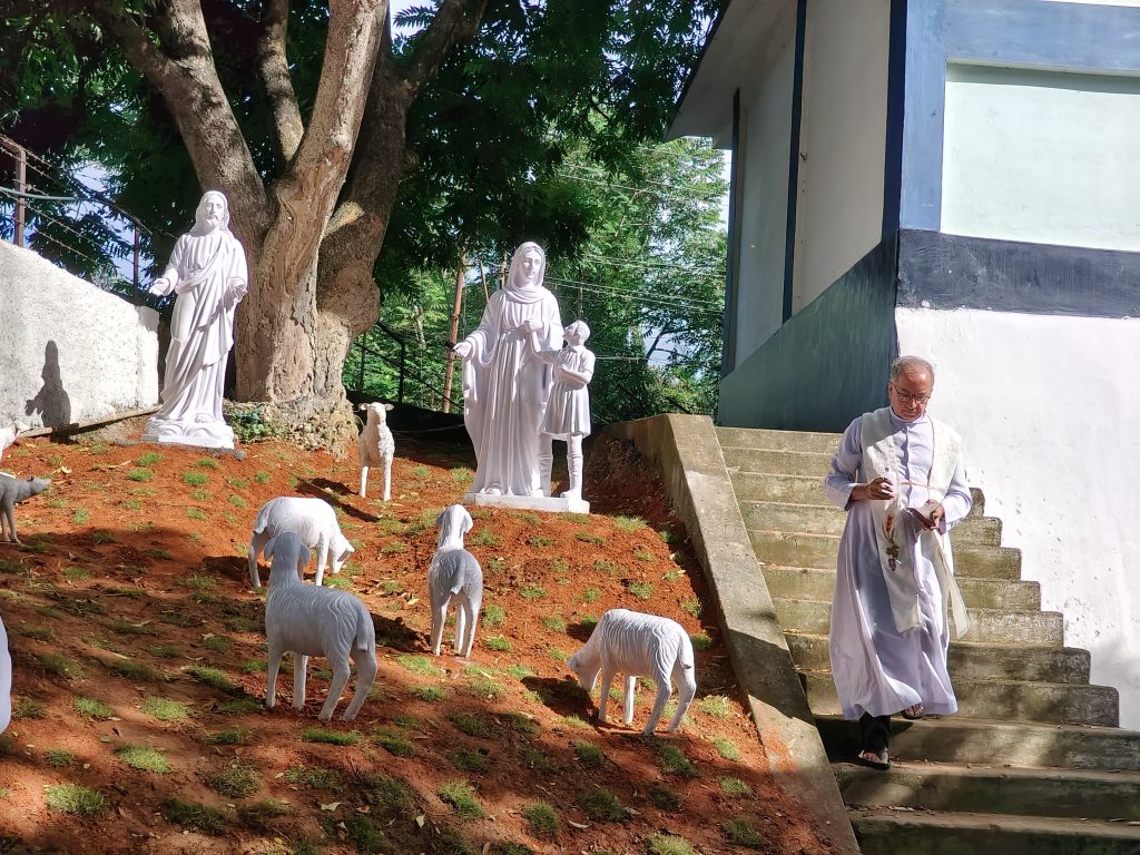 Rev Fr Sebastian Kuricheal SDB, Provincial blessing the Dream Statue at Don Bosco Centre for Learning (DBCL), Tura.
