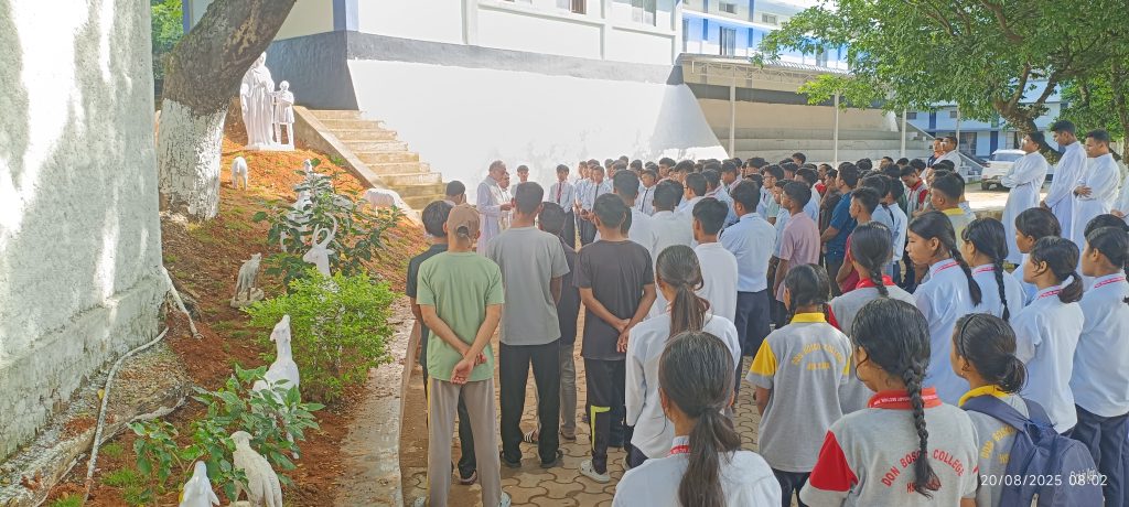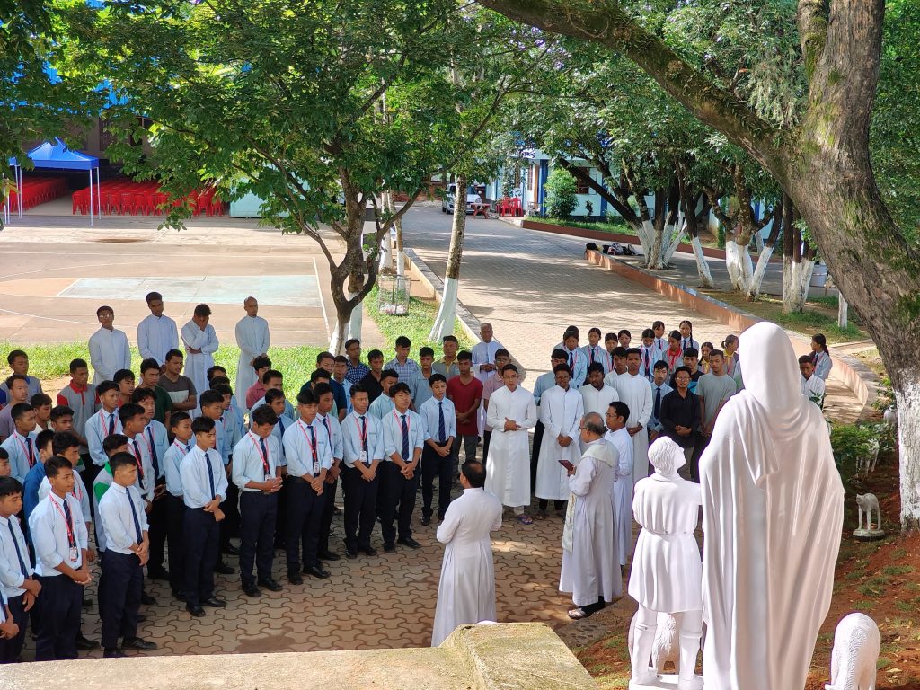 The statue, a symbolic reminder of the mission of the Salesian Congregation and the charism of Don Bosco that has spread across the world, was blessed in the presence of the Brothers, hostel boys, and students.