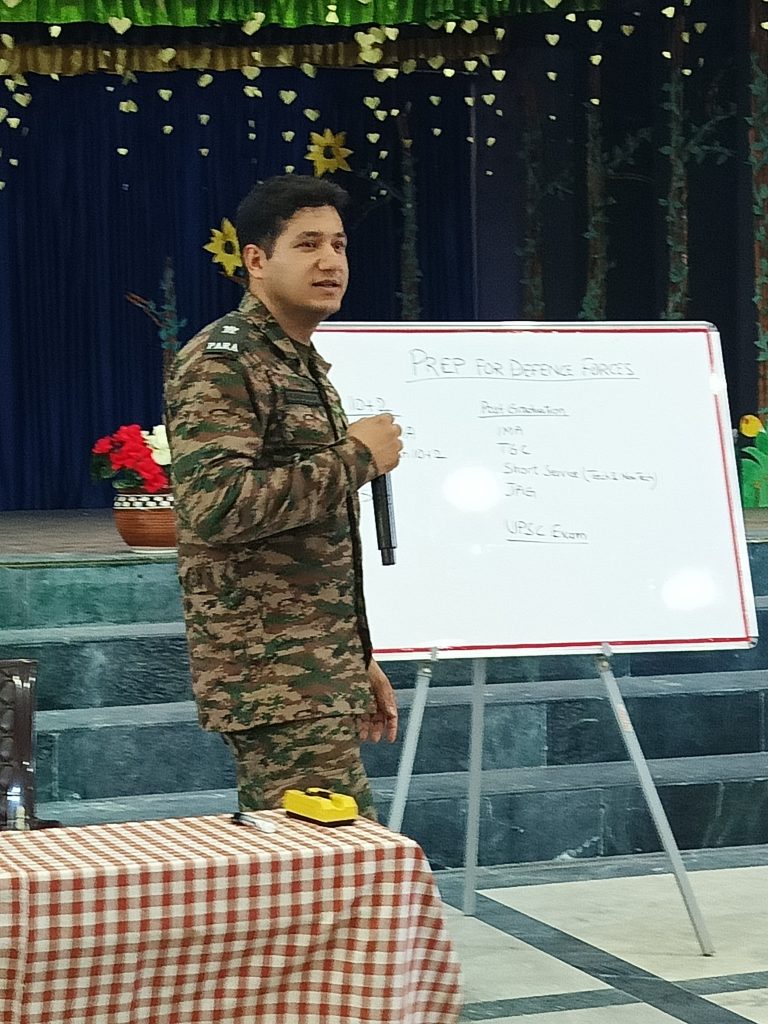 Major Kushagra of the 23 Para SF served as the resource person for the session. During the programme, he engaged the students in an interactive session, offering insights into life in the armed forces and the various career paths available to young aspirants who wish to serve the nation.