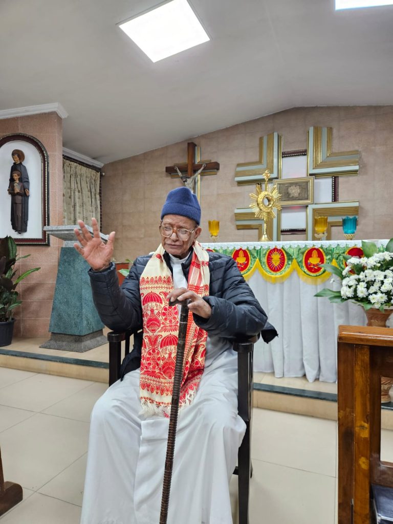 Rev Fr Mathew Pulingathil SDB, the centenarian Salesian priest, visited the Provincial House, Panbazar, Guwahati on 28 January 2026 and shared an inspiring goodnight talk with the confreres of the Provincial House community.