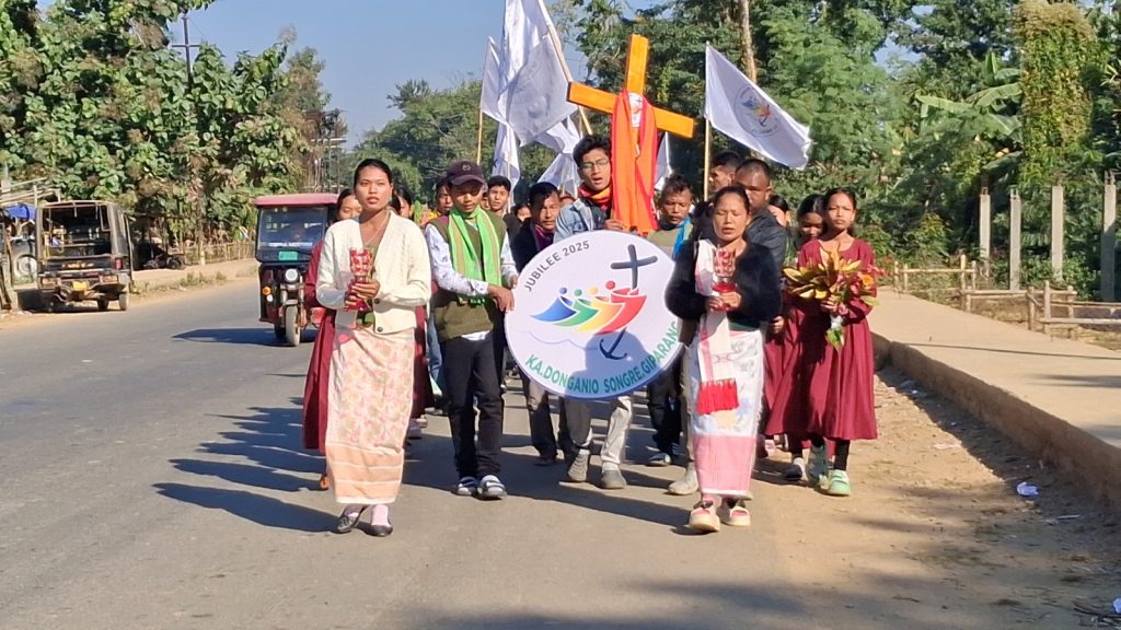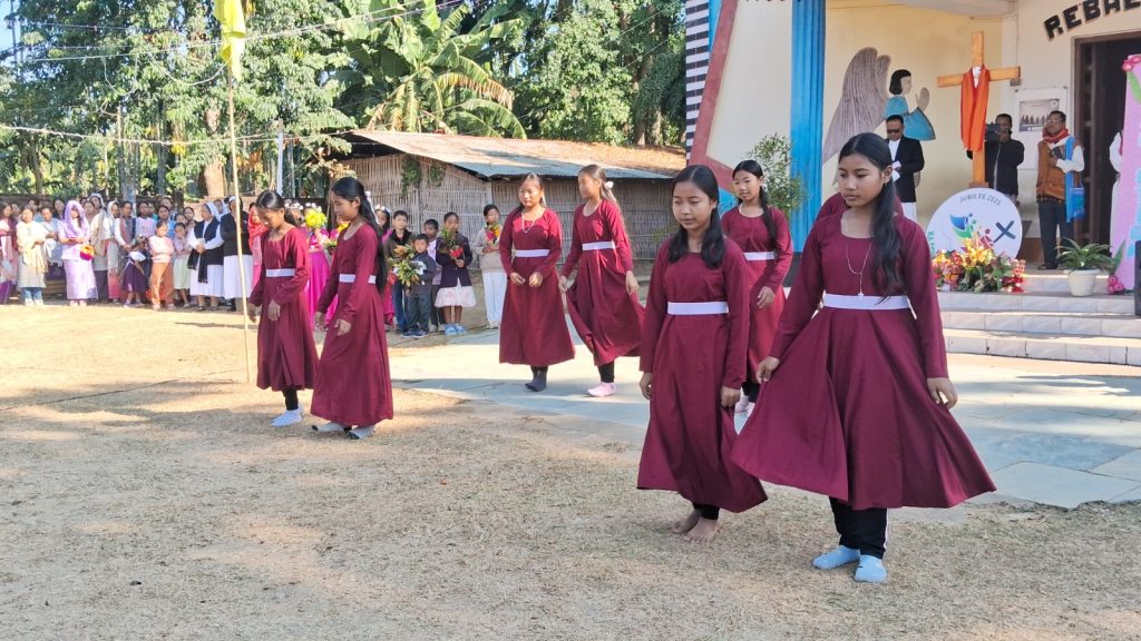 During a brief programme, two parish leaders shared their testimonies on the spiritual impact of the Jubilee Cross’s pilgrimage across all the villages and the year-long celebration of the Jubilee Year 2025. They highlighted the enthusiastic and widespread participation of the faithful, noting that the pilgrimage strengthened the faith of the people and touched even the lukewarm hearts. The youth of Rongkuroi village further enriched the occasion by presenting a graceful dance performance to the Jubilee theme song, “Pilgrims of Hope.”