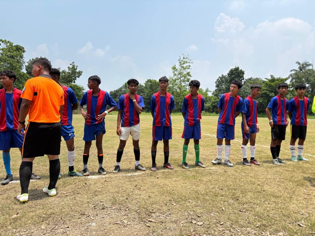 Players lining up before the starting of the match at the Inter Don Bosco Schools Tournament of the Bodoland region.