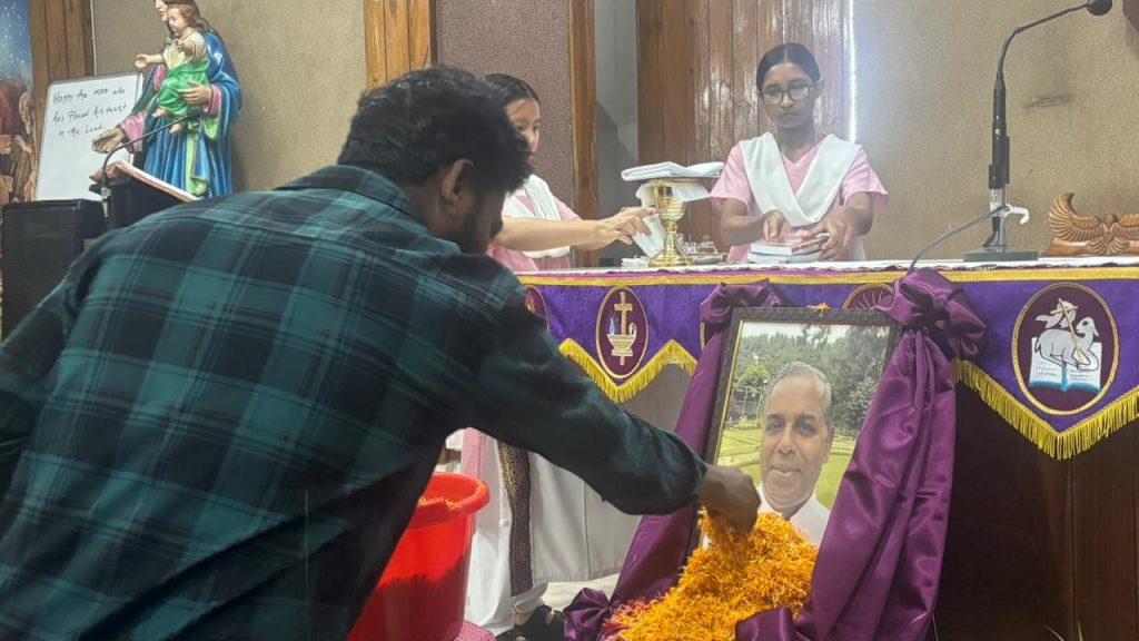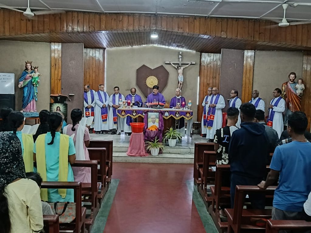 The community of Don Bosco Technical School, Maligaon, commemorated the first death anniversary of Late Rev. Fr. Augustine Edasserithttathil, SDB, with a solemn Holy Mass on March 5, 2026, praying for the repose of his soul. The Eucharistic celebration brought together confreres, companions, and members of the community who gathered in gratitude for the life and service of the late Salesian.