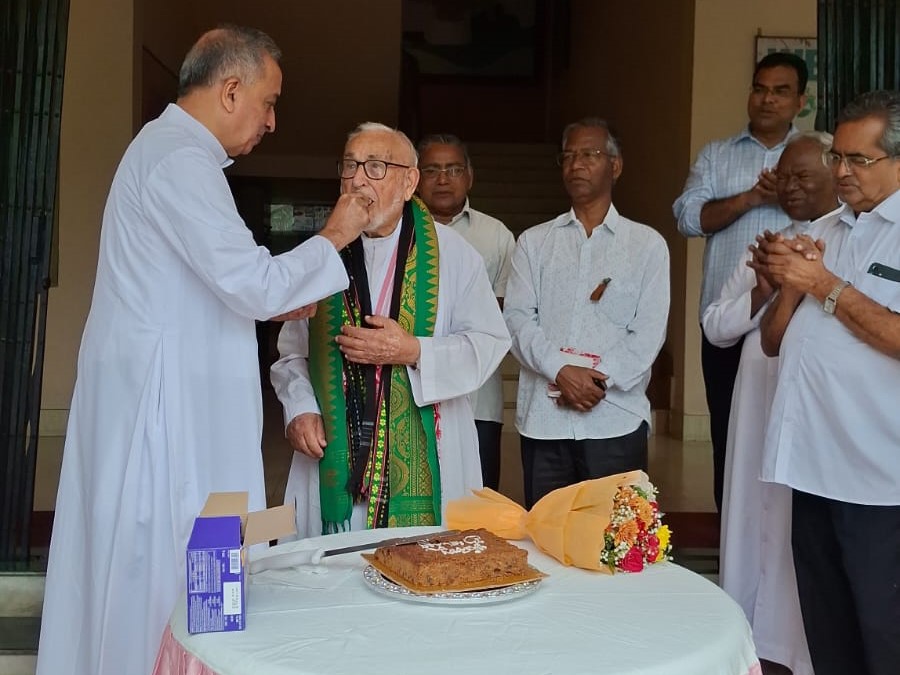 The Province gathered around Rev. Fr. Alfred Marzo as he celebrates his 91st birthday. The Holy Mass was celebrated by Fr. Alfred Marzo himself, in the company of Rev. Fr. Sebastian Kuricheal SDB, Provincial and the community members of the Provincial House.