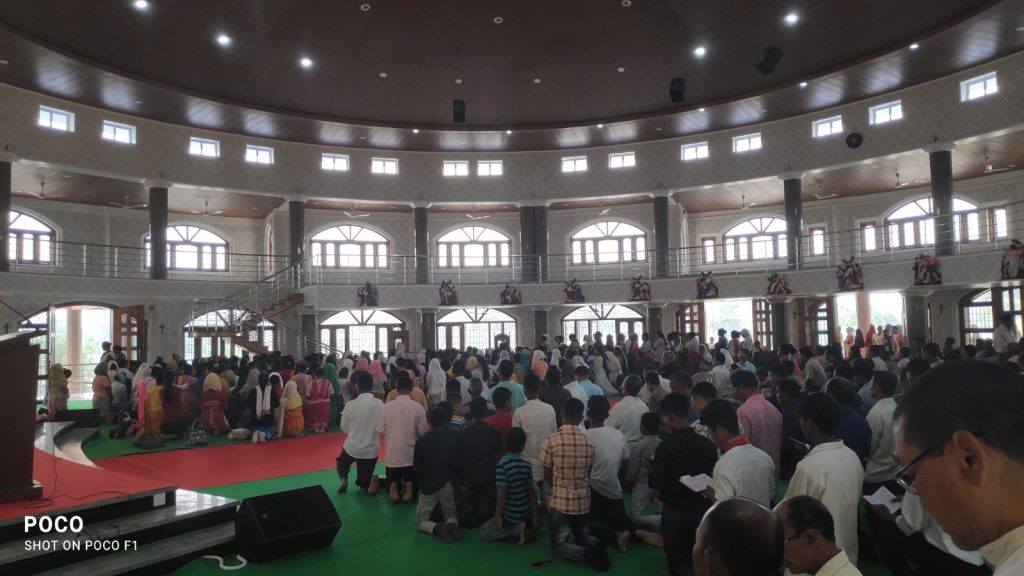 The faithful of Damra Parish infront of the Bongaigaon Cathedral Chrch.