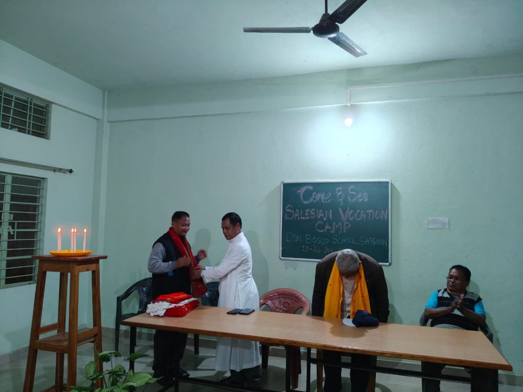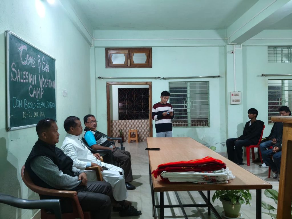The occasion was graced by the presence of Fr Albert Thyrniang SDB, Parish Priest of Satgaon, along with the confreres of the community. In his words of welcome, Fr Albert greeted the vocation team and the candidates, encouraging them to make the most of these days through sincere discernment, learning, and a deeper understanding of God’s will in their lives. As a gracious gesture of hospitality and appreciation, he presented a traditional Garo Pandra to all those present.