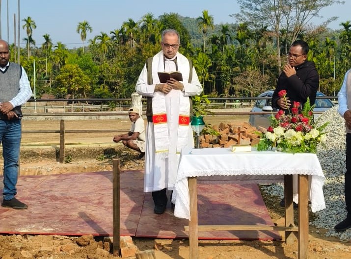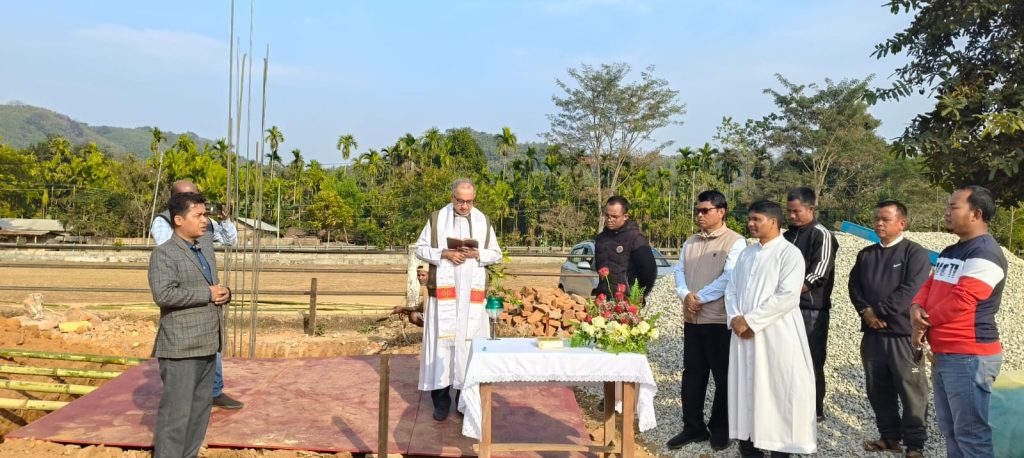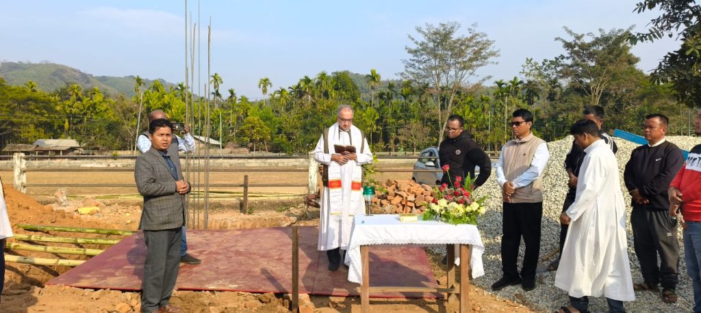 The blessing of the foundation for a new school building at Don Bosco School, Nongchram, a sub-centre school under Holy Family Parish, Rongjeng, was held on 1 February 2026 in a spirit of faith and gratitude. The foundation blessing was carried out by Rev. Fr. Sebastian Kuricheal, SDB, Provincial, in the presence of Rev. Fr. Jayaprakash Antonimuttu, SDB, Economer, Rev. Fr. Pojit Marak, SDB, Rector of Holy Family Parish, Rongjeng, the community members of Rongjeng, and the people of Nongchram village.