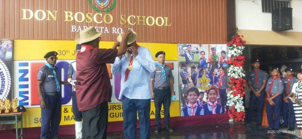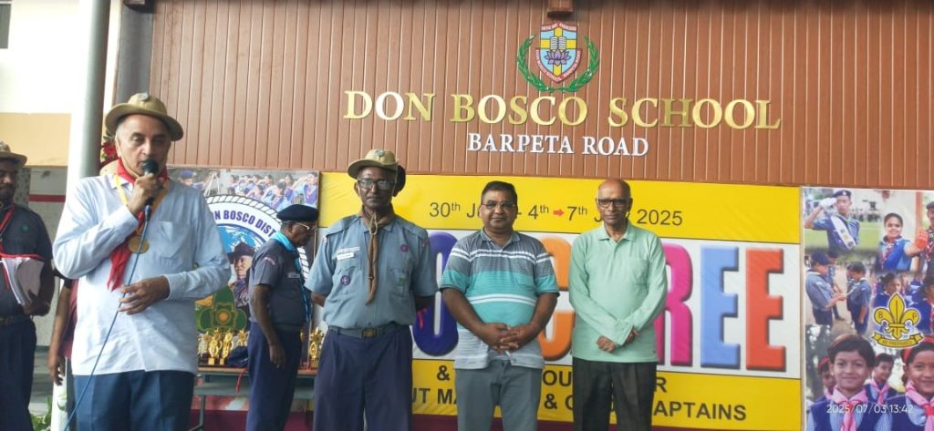 Rev. Fr. Sebastian Kuricheal SDB, the Provincial of the Salesian Province of Guwahati and Chief of the Don Bosco Scout and Guide District, paid a significant visit to the ongoing Mini Boscoree and Scout Master Training Camp at Don Bosco School, Barpeta Road. The camp, which began on 30th June and will conclude on 4th July 2025, has drawn more than 1300 enthusiastic Scouts and Guides from various Don Bosco institutions across the Province.