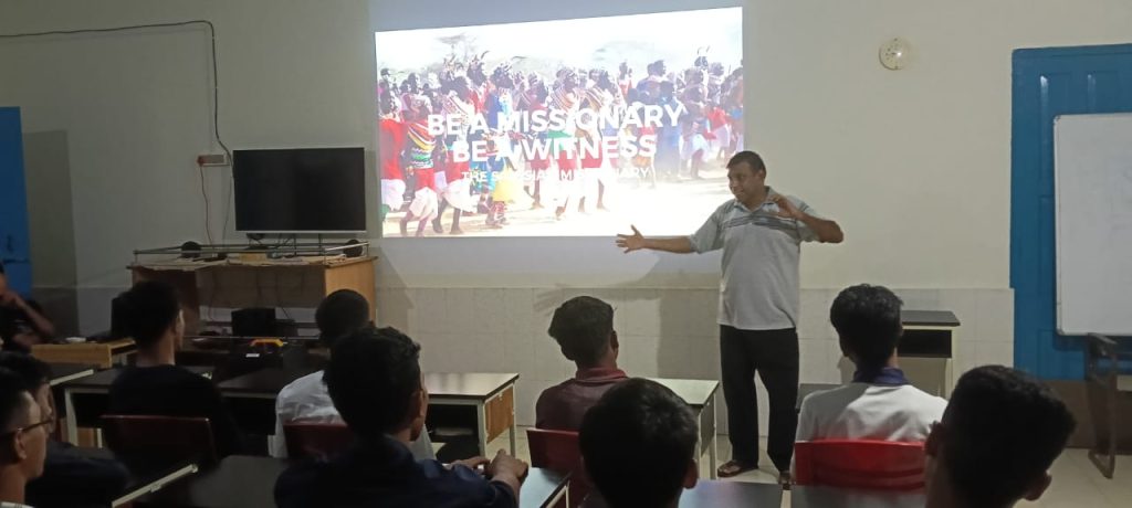 One of the Pre-novices presenting a PPT during the Missionary Animation Prayer Service at Pre-novitiate house, Dotma.