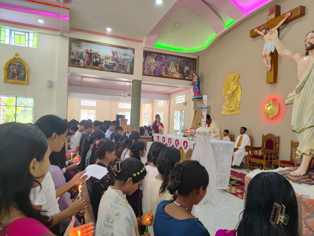 On 4th May 2025, the Holy Cross Parish in Rongkhon celebrated its annual Parish Youth Day with great enthusiasm and devotion. The day began with a solemn Holy Mass, presided over by Fr. George William SDB, Assistant Parish Priest. During the Mass, new members of the parish youth group made their solemn promise, while the old members took the opportunity to renew their commitments.