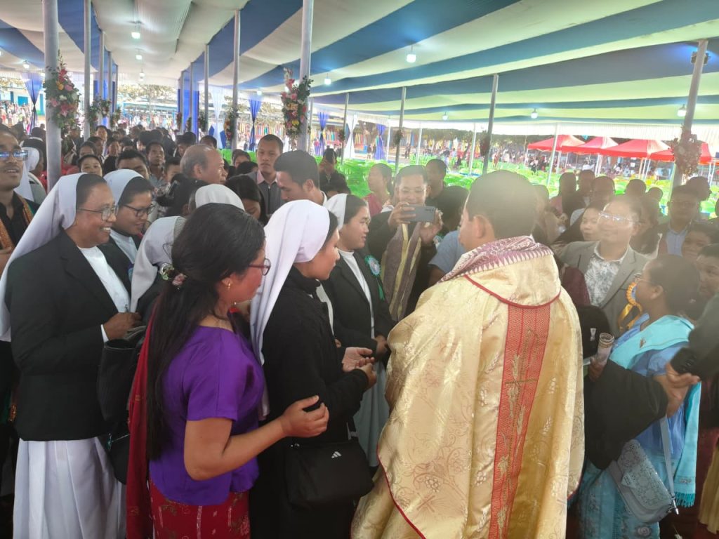 During the felicitation programme, Rev. Fr. Sebastian Kuricheal, SDB, congratulated the newly ordained priest and reminded him to realise deeply that he is now a priest of the Church. The Provincial expressed heartfelt gratitude to Bishop Andrew R. Marak for conferring the sacrament of Holy Orders and thanked Rev. Fr. Cyril Sangma, Parish Priest of Dalu, along with the parishioners, for the meticulous organisation of the ordination ceremony. He also invited the congregation to continue praying for the new priest.