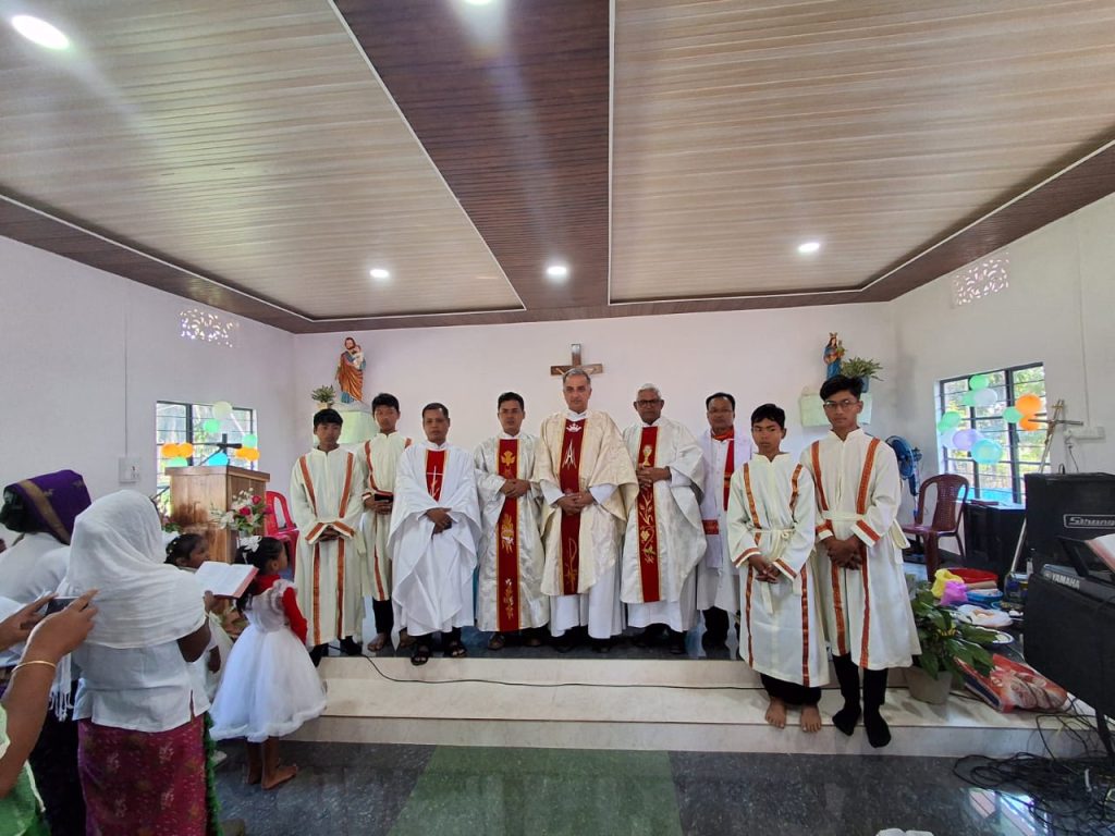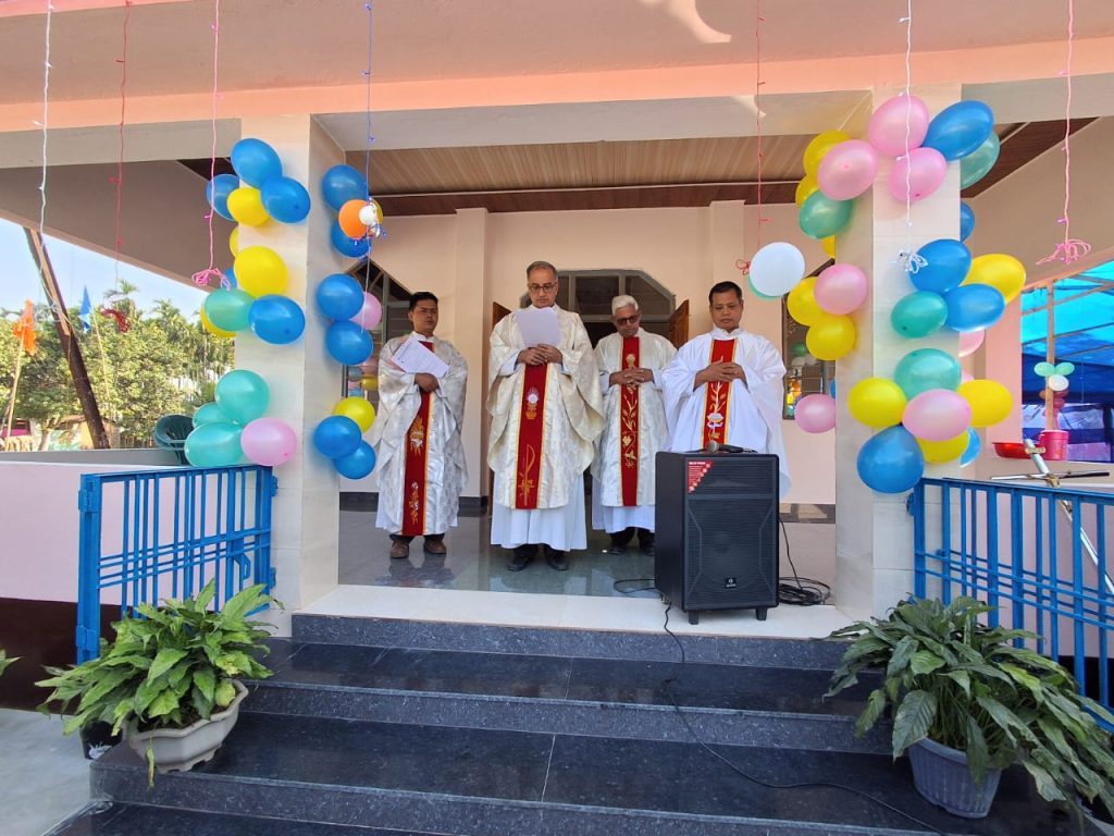 The Holy Eucharist was presided over by Fr. C.A. John, who initiated the construction of the church, while the homily was delivered by Fr. Pojit Marak, a priest belonging to the parish. The ceremony marked the completion of a significant spiritual and communal project for the village community.