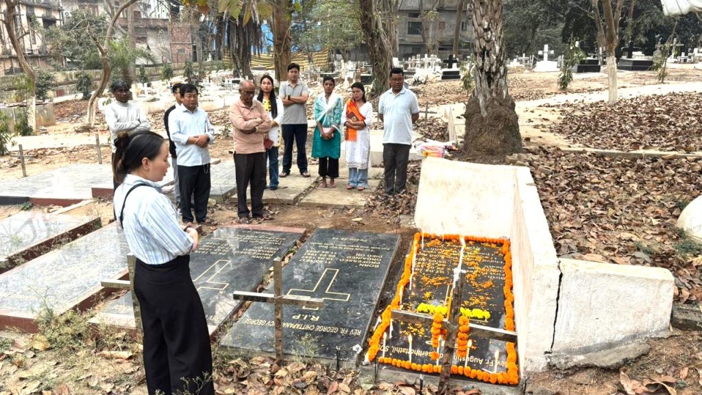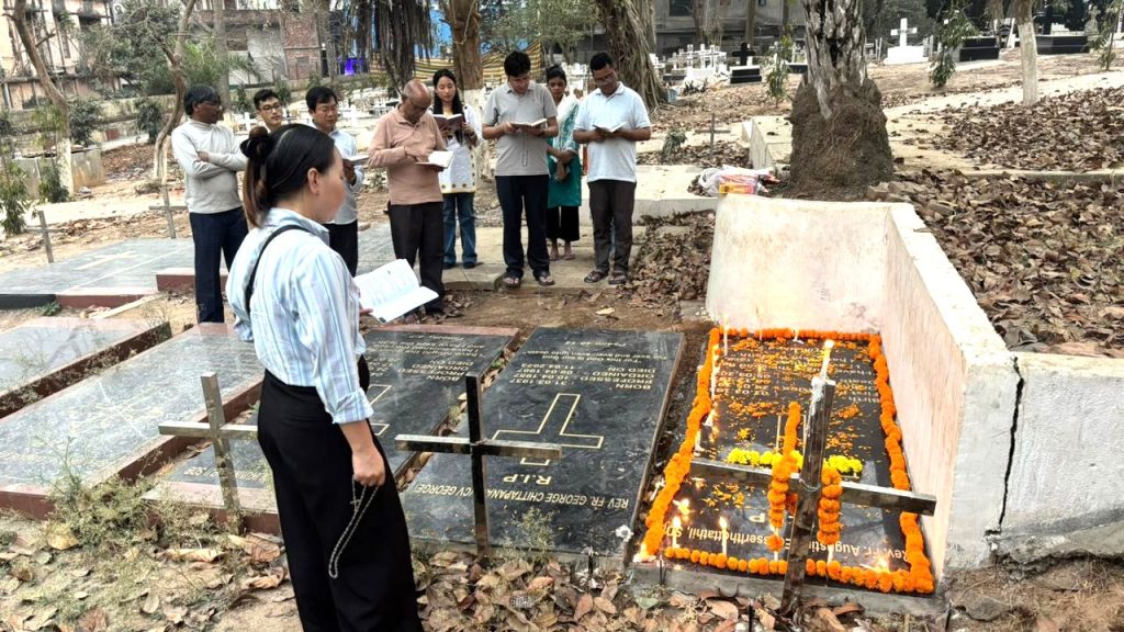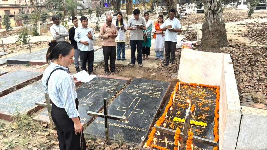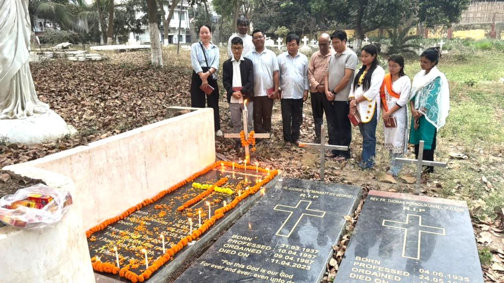 The Provincial House community, led by Rev. Fr. Charles Deepen Lakra SDB, Rector, visited the grave of Rev. Fr. E.P. Augustine SDB on March 6, 2026, to offer prayers for the repose of his soul on the occasion of his first death anniversary.