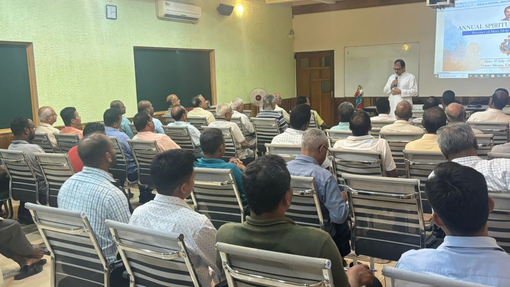 The Second Annual Spiritual Retreat of the Province commenced on 27th July 2025 at Siloam, Umiam, amidst an atmosphere of prayer and reflection. The retreat is being preached by Rev. Fr. Biji Thomas SDB, who opened the retreat with a deeply personal sharing of the beginnings of his charism as a retreat preacher. Encouraging all retreatants to journey inward during these sacred days, Fr. Biji urged everyone to draw closer to God and spend quality time in prayer.