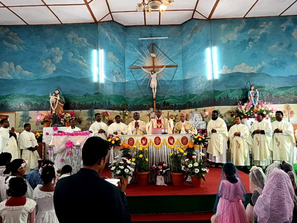Christ the King Parish, Dimakuchi, joyfully celebrated the Silver Jubilee of Religious Profession of Rev. Fr. Anugrah Tete, SDB, the Rector and Parish Priest of the parish, on Sunday, 8 February 2026, marking 25 years of dedicated service in religious life. A good number of Salesians were present for the Holy Mass.