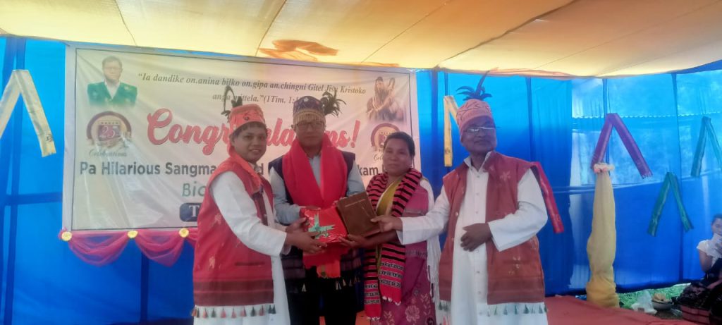 The Eucharistic celebration was followed by a heartfelt felicitation and cultural program. Songs, dances, and speeches from parishioners and villagers alike expressed deep appreciation and gratitude for Mr. Sangma’s tireless dedication to God and His people. The atmosphere was filled with admiration and joy, celebrating a man who has truly embodied faithful service to the Church for a quarter of a century.