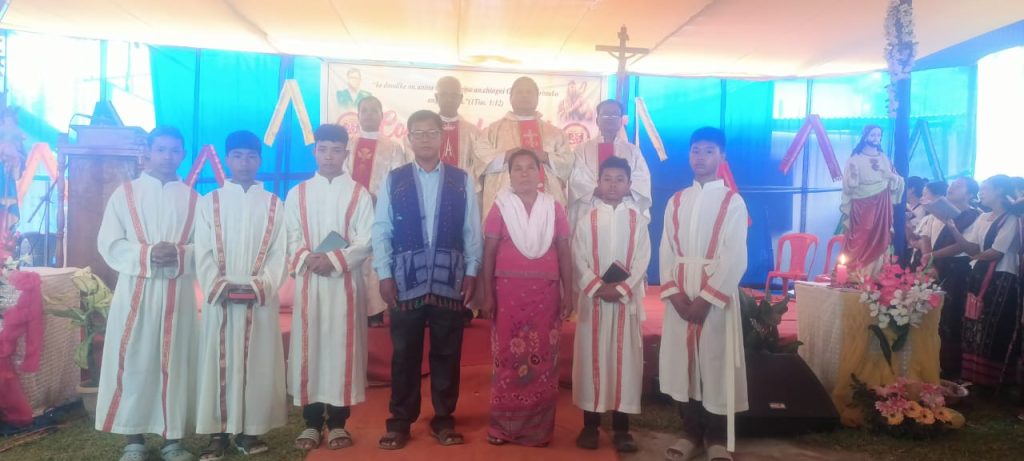Fr. Abraham Kanattu, SDB, Parish Priest and Rector of Sojong, presided over the Holy Mass as the main celebrant. The homily was delivered by Fr. Albert Thyrniang, SDB, Parish Priest of Satgaon. Among the concelebrants were Fr. Joseph Teron, one of the former parish priests of the head catechist, Fr. Charles Sangma, and Fr. Daniel Sangma, both assistant parish priests.