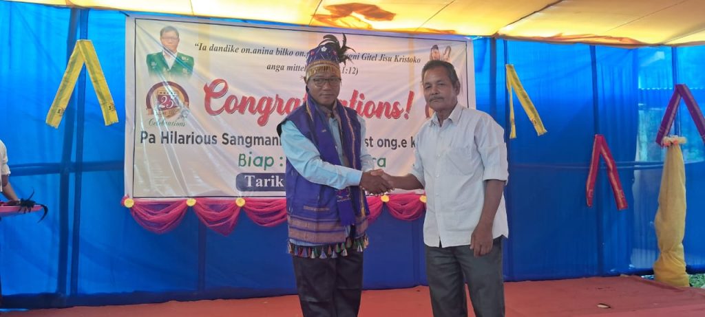 Hilarius Sangma, the second head catechist of Mary Help of Christians Church, Satgaon Parish on his Silver Jubilee of his service.