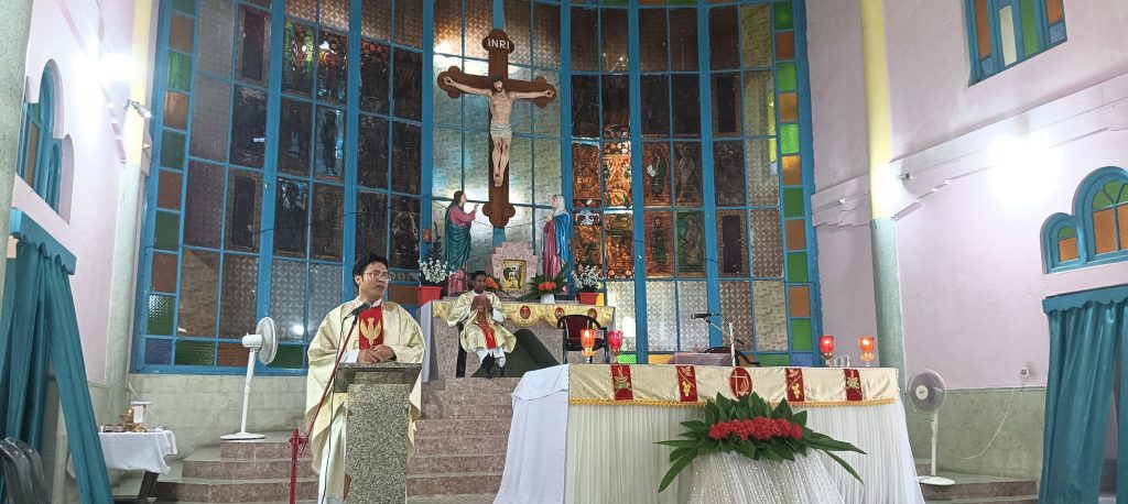 Preaching the homily, Fr Bivan Rodrigues Mukhim urged the youth to be instruments of service in todayβs world. Reflecting on the Gospel scene of the Last Judgement, he reminded the young people that their worth will be measured by how they serve their brothers and sisters in need. βIn an age dominated by self-interest and technology-driven isolation, Christ invites each one of us to forget ourselves and extend our hands in loving service,β he said. He concluded by encouraging everyone to pray for the grace to serve others with joy and generosity.